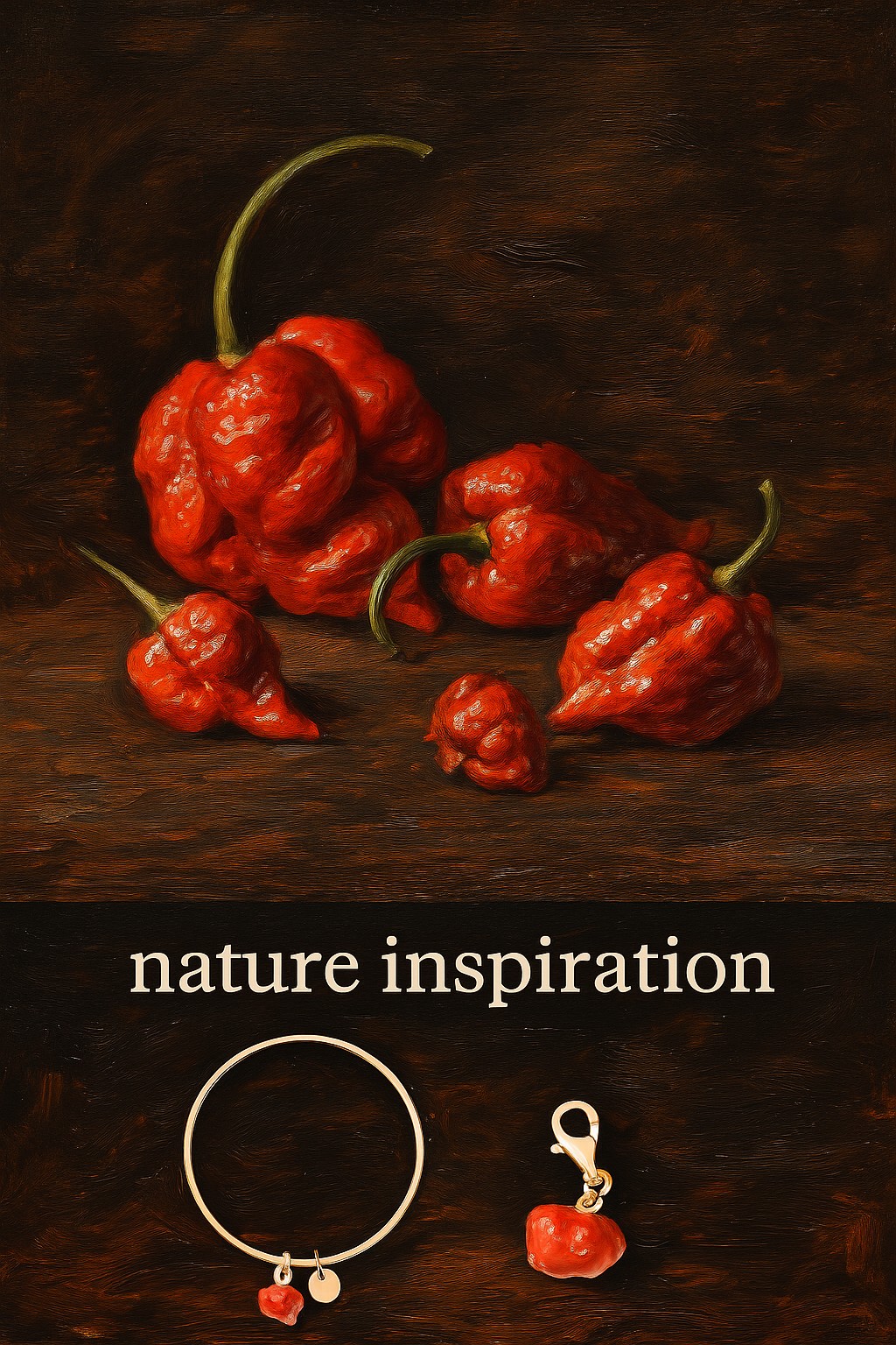 Pendant with baby Carolina Reaper colour red. Silver 925. HANDMADE AND MADE IN ITALY.