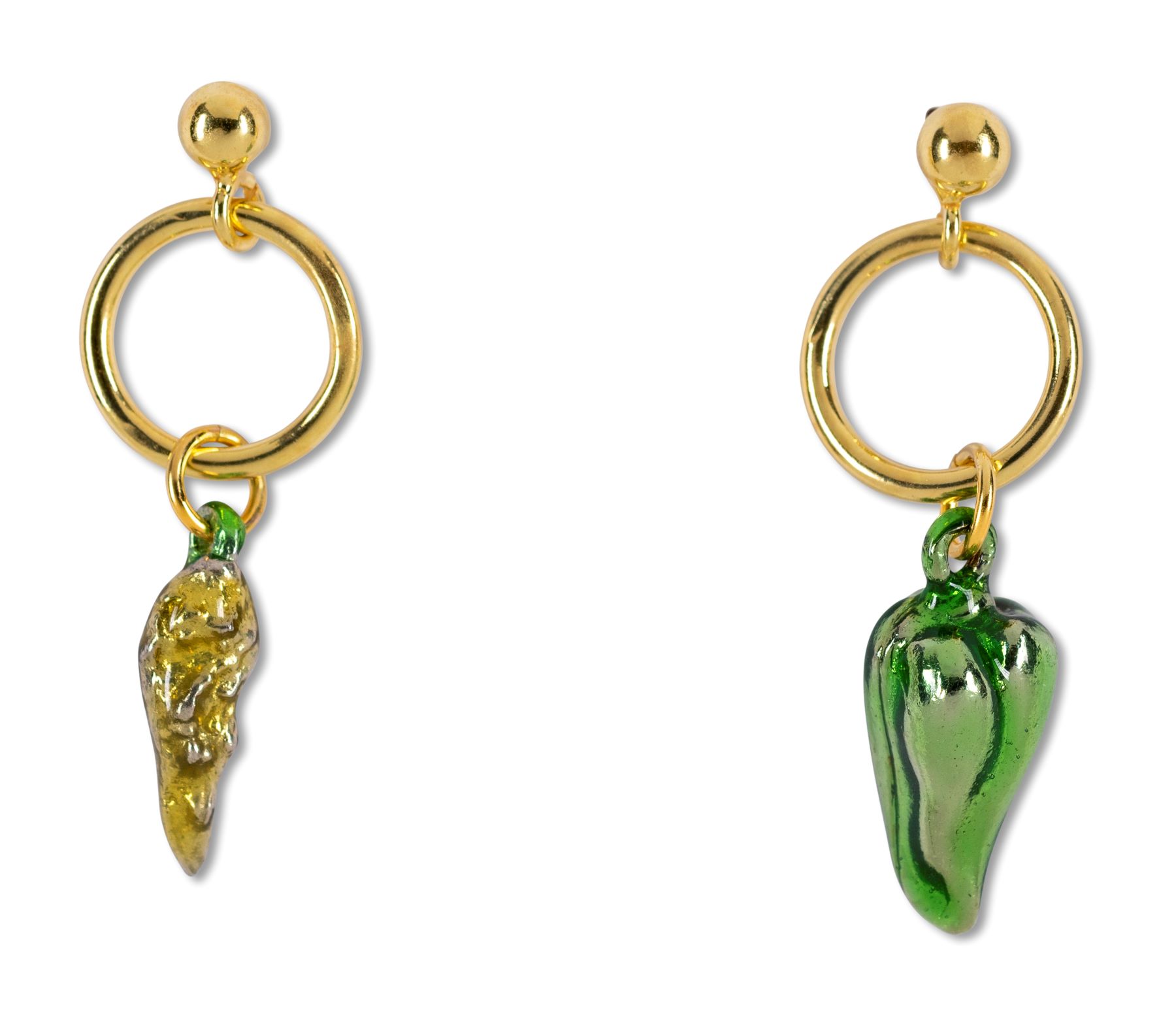 Ball earrings with mixed baby Pepperoncini tipology Fatalii and Habanero colours yellow and green made in high Strength 925, gold plated Silver. NOT TO BE SOLD SEPARATE. HAND MADE, HAND PAINTED AND MADE IN ITALY.
