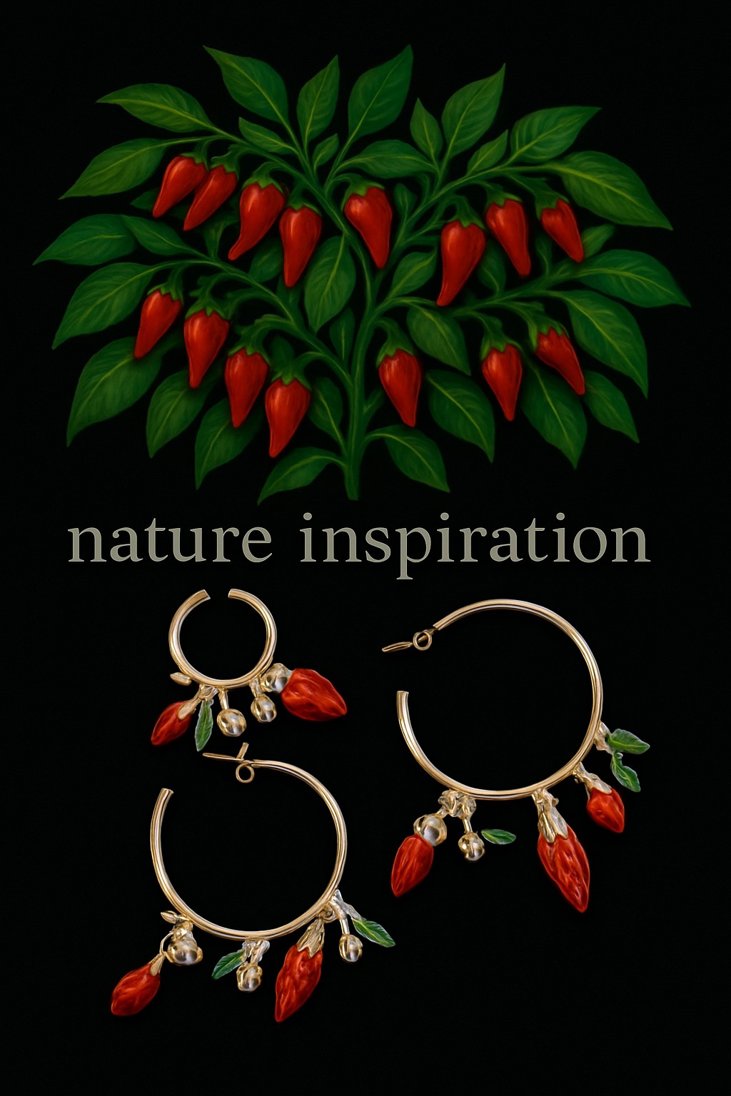 Orecchini a cerchio realizzati in Argento 925 con ciondoli baby hotdaisy smaltati rossi, foglioline smaltate verdi e palline. Peso gr. 18,3. PRODOTTO ARTIGIANALE, SMALTATO A MANO E MADE IN ITALY.