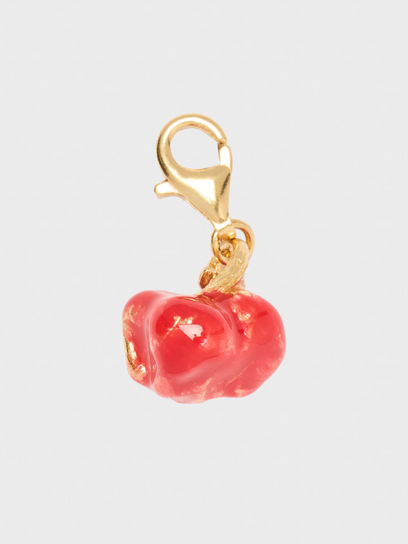 Ciondolo con neonato Carolina Reaper smaltato rosso in Argento 925 bagnato oro. Chiusura a moschettone. Prodotto artigianale, dipinto a mano e MADE IN ITALY.