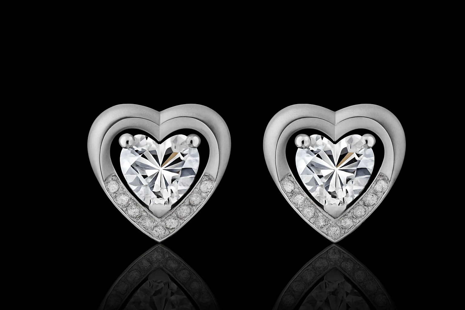 Orecchini realizzati in argento 925 a forma di cuore con zirconi diamantati a punto luce. Chiusura a farfallina. Prodotti artigianalmente, incastonati a mano e made in Italy.
