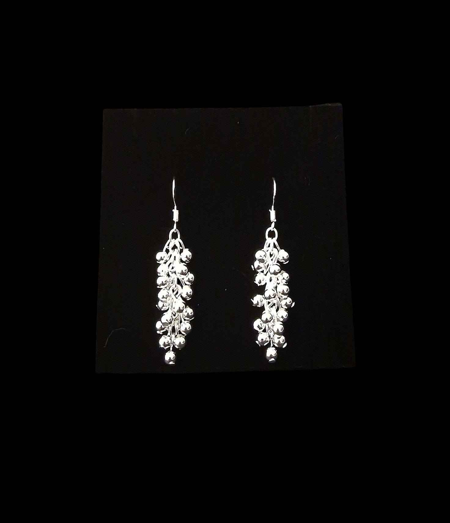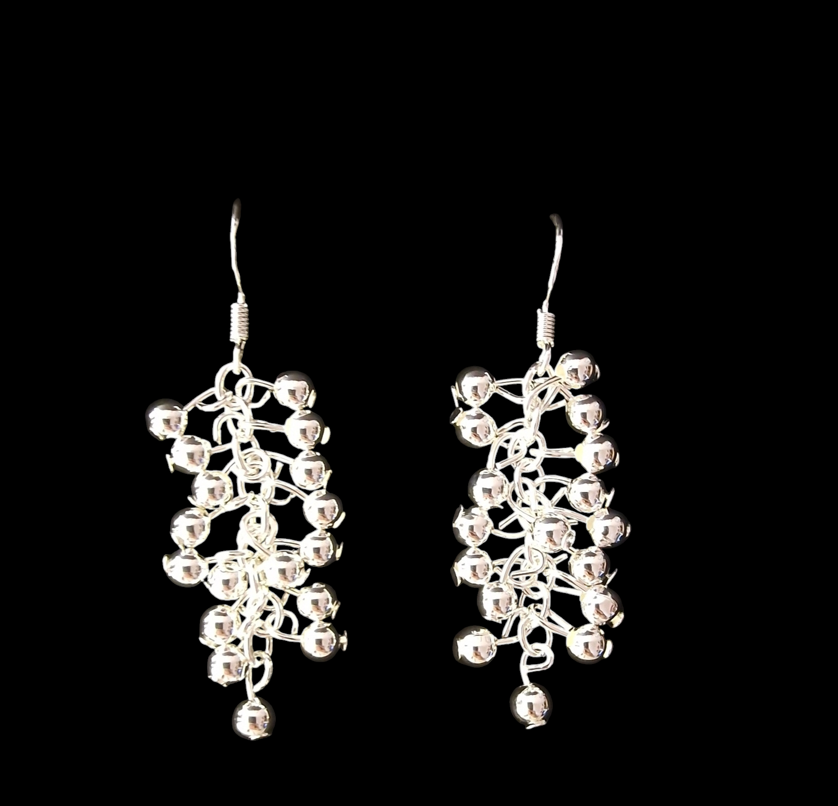 Orecchini realizzati in Argento 925 a forma di grappolo con palline effetto diamantato. Lunghezza orecchini cm. 5 con chiusura a monachella. Creati e assemblati a mano. Prodotto artigianale e Made in Italy.